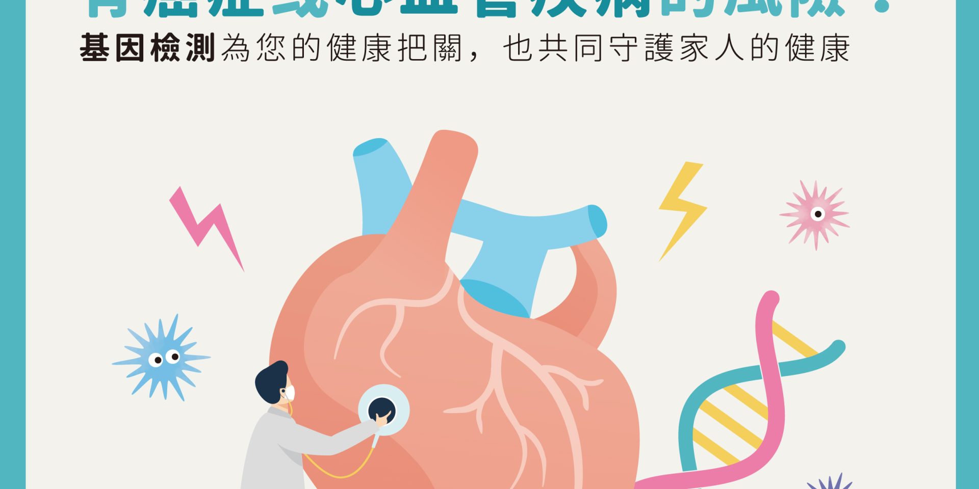 ※ 疾病成因十分複雜,此檢測針對ACMG國際醫學會建議關注之基因做風險評估,若結果無基因變異,仍需注意疾病的其他風險因子。